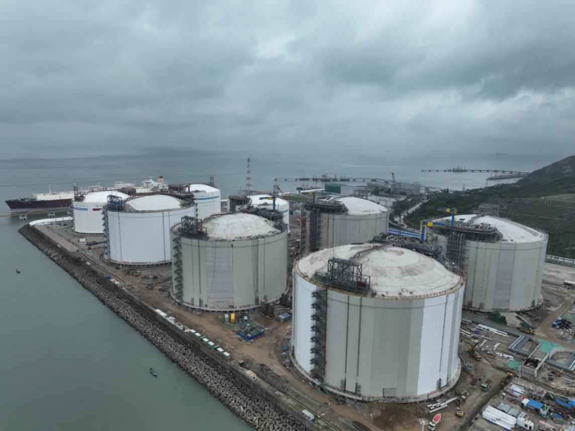 Project?introduction:?Zhuhai LNG Terminal Project Phase II is expanded?upon the foundation of the phase I project, with an expansion volume?of 3.5 million tons per year. After expansion, the Zhuhai LNG?terminal will have a total capacity?of 7 million tons per year. COOEC undertakes the?EPCIC of 5 full-containment concrete LNG storage tanks with a capacity of 270,000?cubic?meter each.